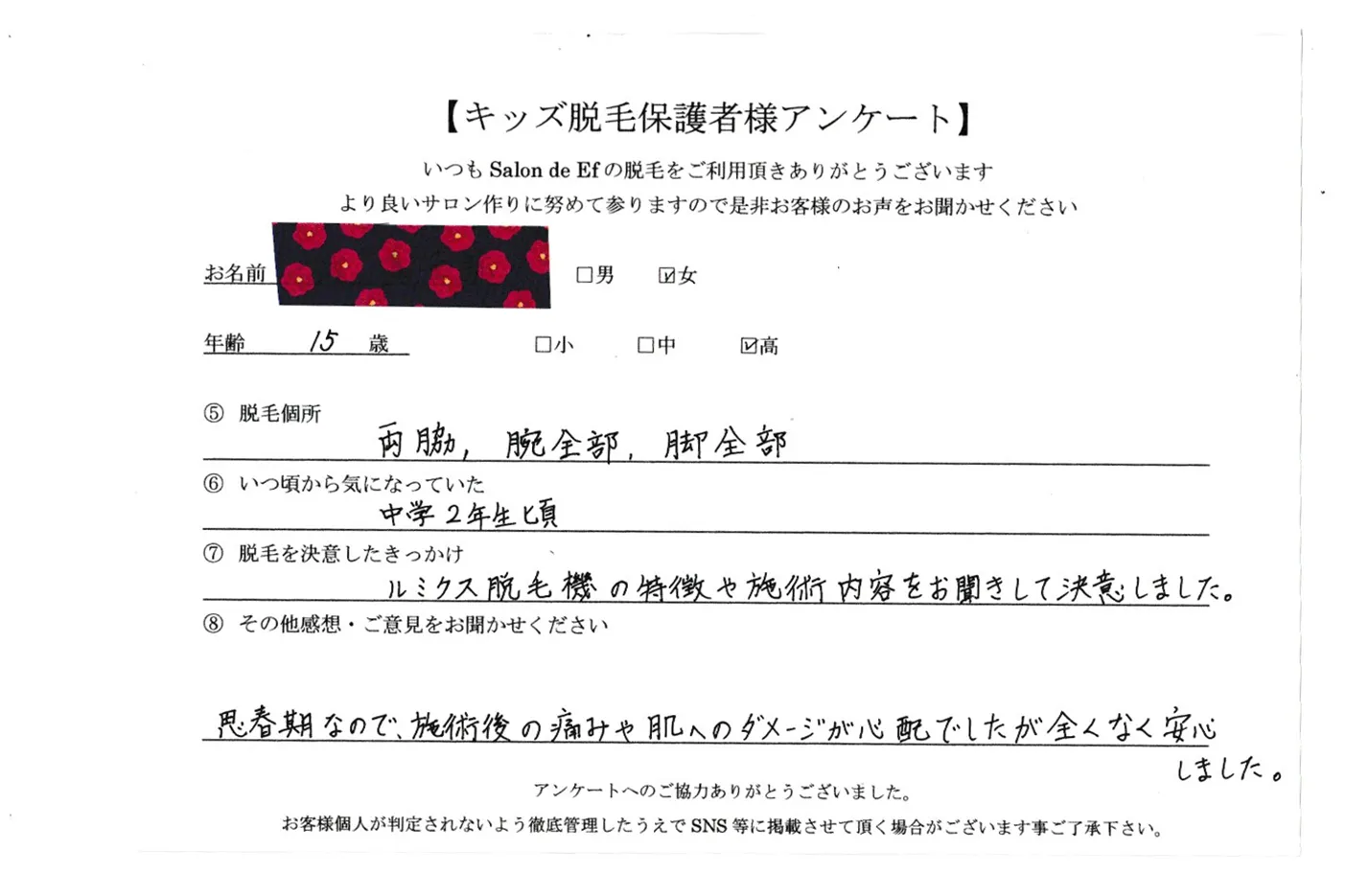 ほんのりとした温かみを感じる程度で、痛みはほとんどありません。